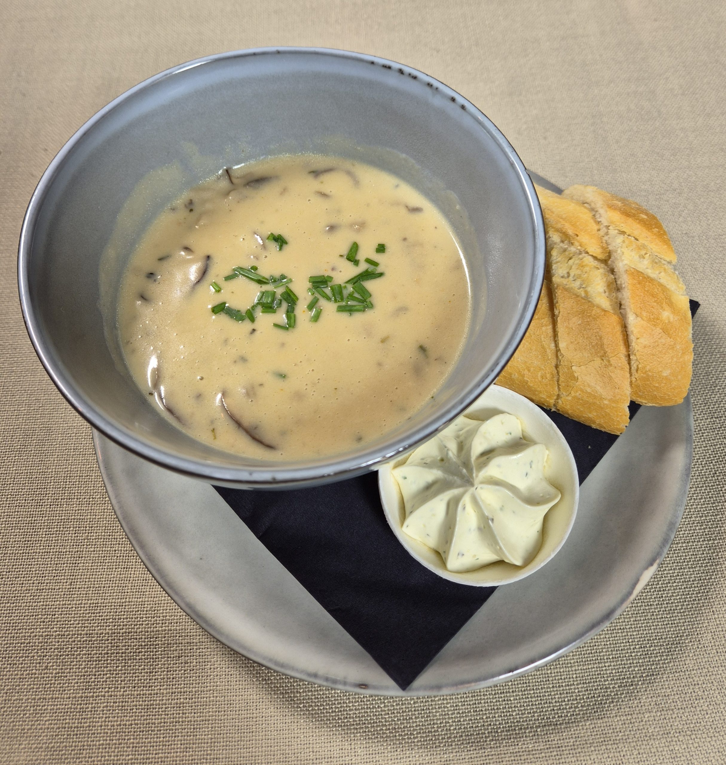 Romige soep met bospaddenstoelen.